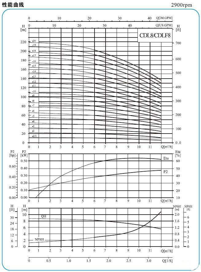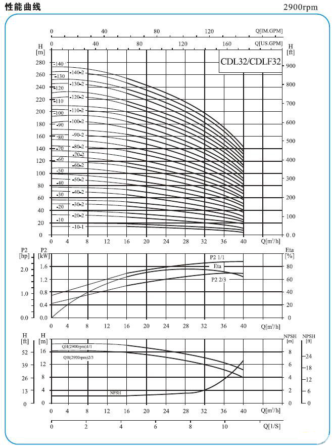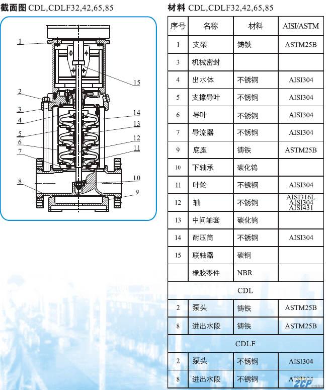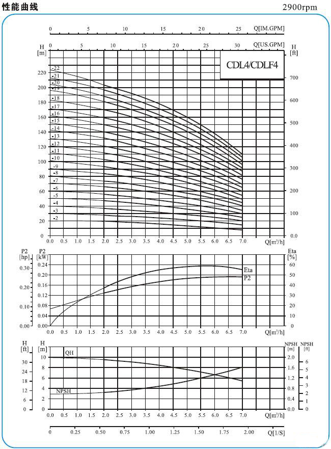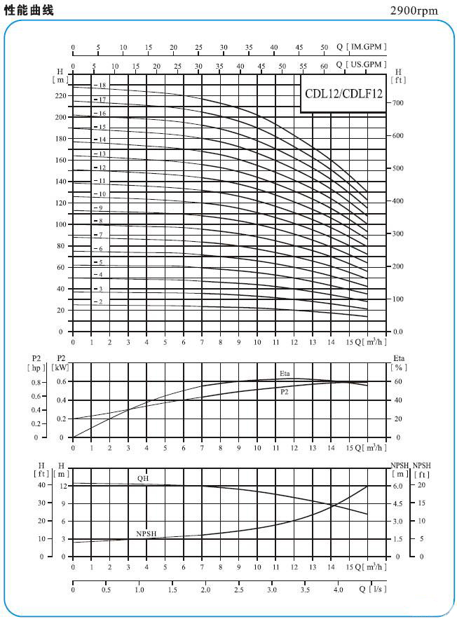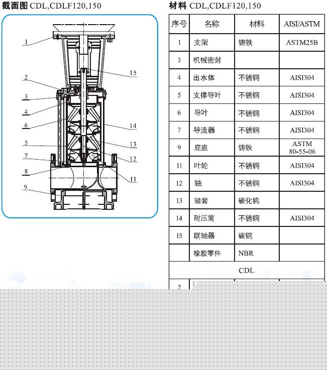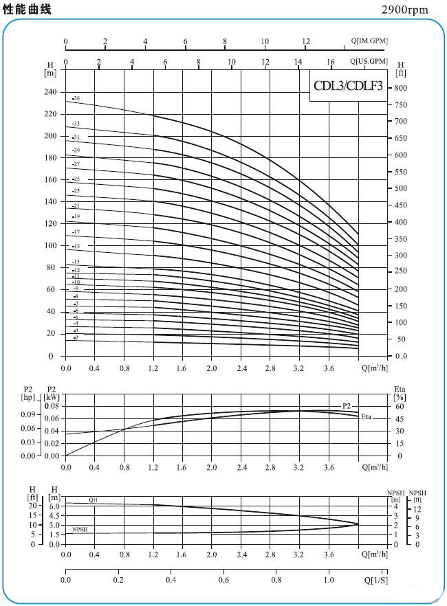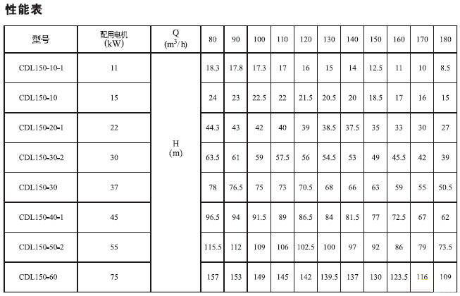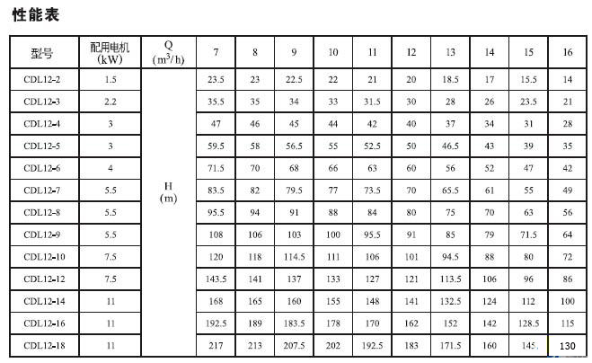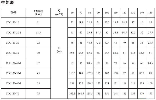 CDLF系列輕型不銹鋼立式多級泵(性能參數(shù)):